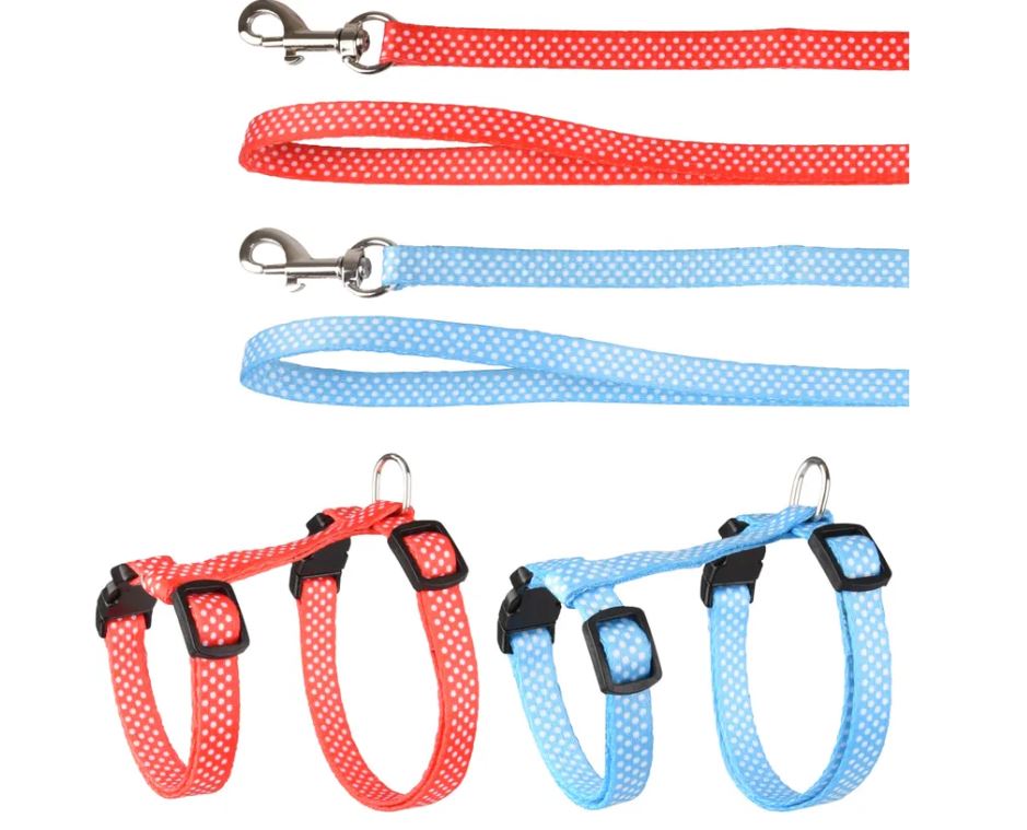 **La pettorina ha una fibbia a scatto e il guinzaglio ha moschettoni